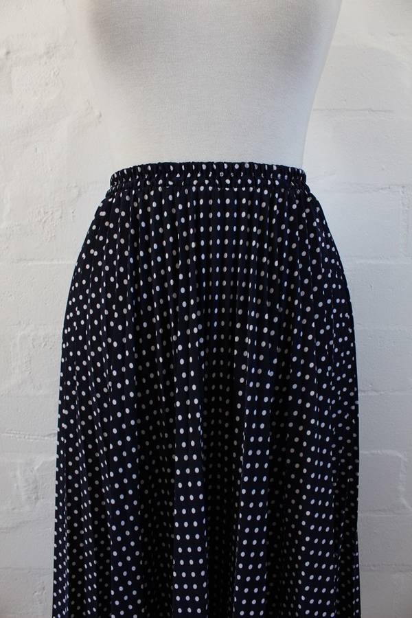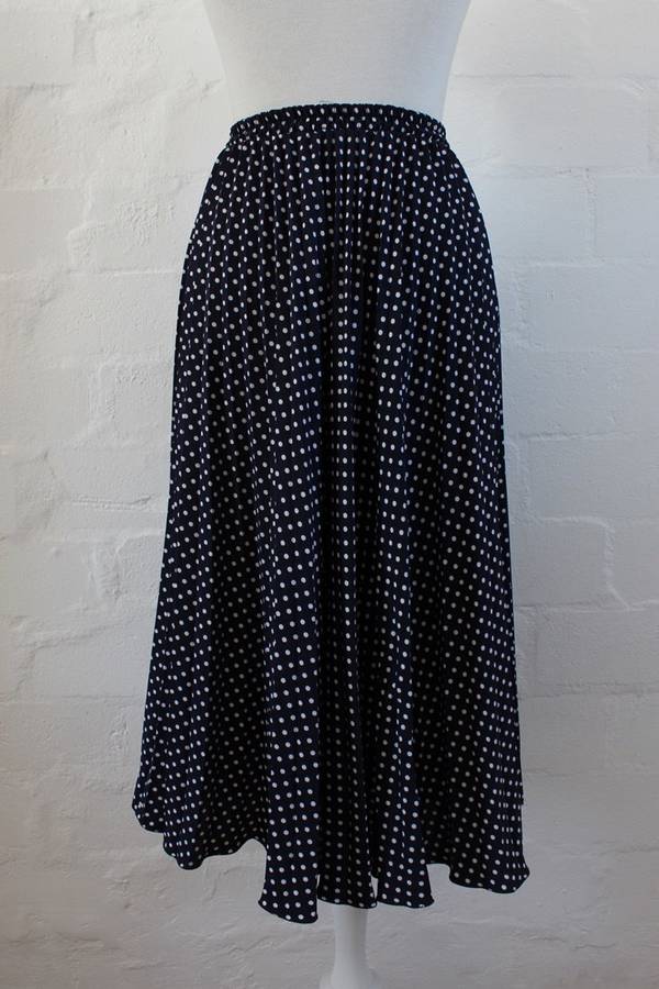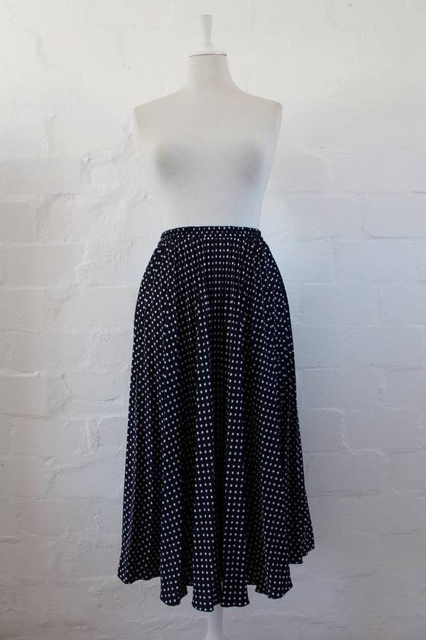 VINTAGE POLKA DOT NAVY WHITE PLEATED SKIRT - SIZE 10-12