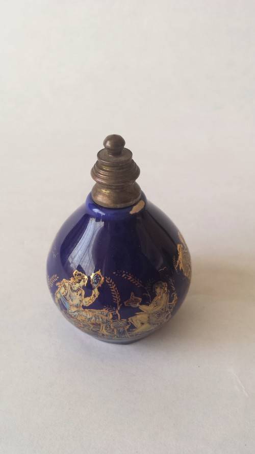 Vintage Porcelain Miniature Perfume Scent Bottle. There are 2 chips - one top, one at bottom - see pics