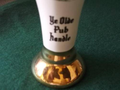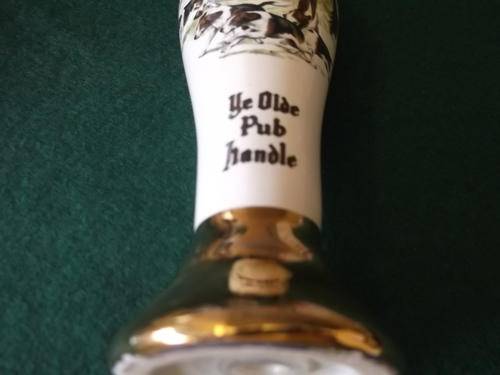 Up for auction is this very nice porcelain "Ye Olde Pub Handle" in excellent condition. It's thickly gilded and intact. it still has the original label on it and I don't think it's ever been used. It stands at approx. 15cm high and the base measures approx. 5cm in diameter. Please look at the pictures as they form part of the description. Payment to be made no later than Monday after close of auction. Thanks for looking