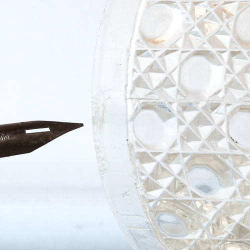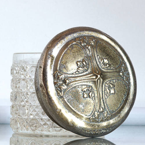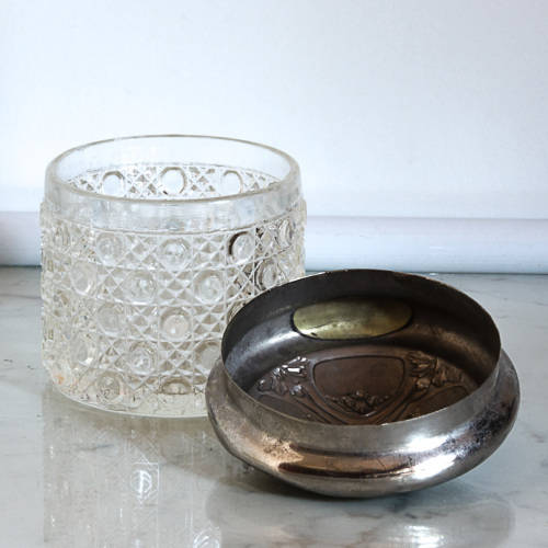 Chrome is disintegrating leaving the brass/copper base metal of the lid exposed. Slight denting on the lid.