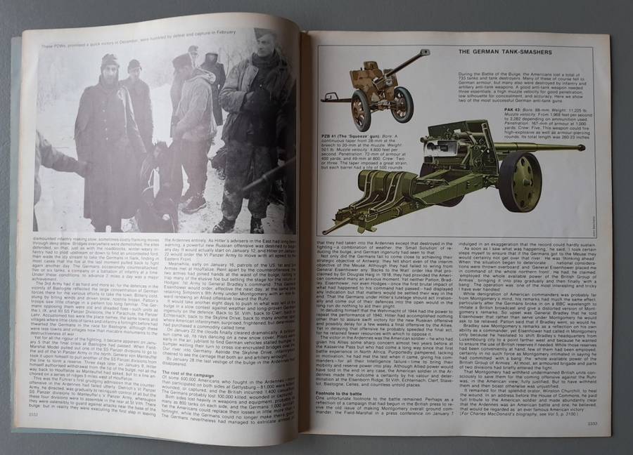Vintage Purnell's "History Of The Second World War". Volume 6 Number 4. "BATTLE OF THE BULGE - The Allies Hit Back". In good vintage condition. Please see thumbnail images above for more detail.