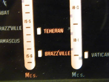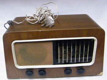 This valve radio is reminiscent of yesteryear of times before the advent of television - evoking memories of evenings spent by the family huddled together around the radio catching up with the latest news or listening to their favorite stories. The face lights up when it is switched and towns/cities marked on the face where the frequencies were found where they submitted from. The radio is in working condition, the speakers are working - I can hear sound but the aerial is missing so reception is poor and I am sure with an aerial one could easily emulate the good old days :) It is quite a large radio, 50cm wide, 28cm tall and 22.5cm from front to back and weighing a sturdy 11.2kg. A bit of the veneer on the body has come off, nothing too serious and I notice a small split in the rubber that surrounds the face of the radio.