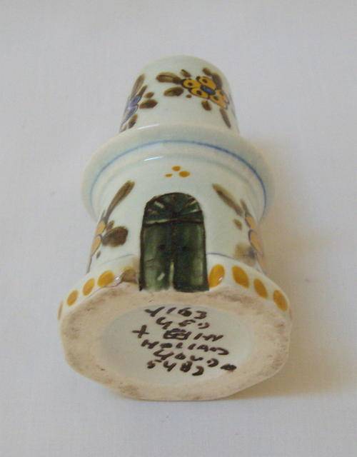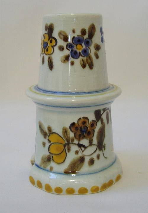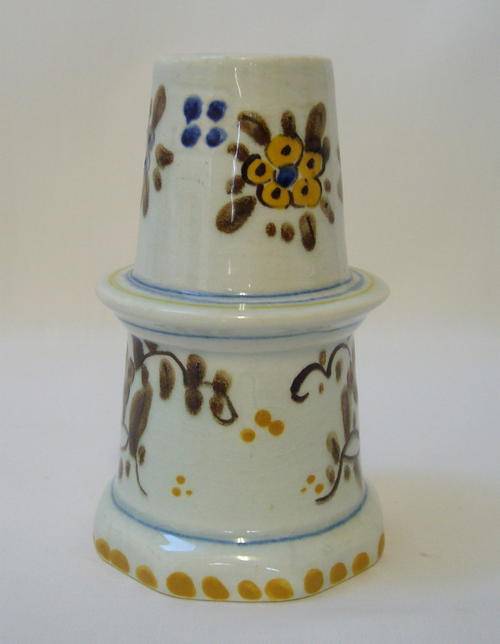 as a vase or candle holder, decorated with coloured traditional Dutch floral motifs.
