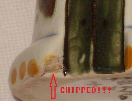 Fine overall crazing and a chipped crack to the left of the door (see close-up image).
