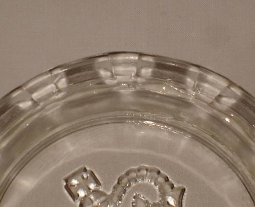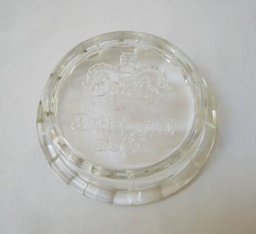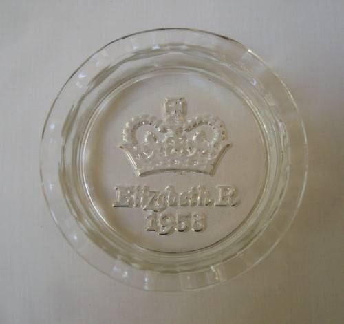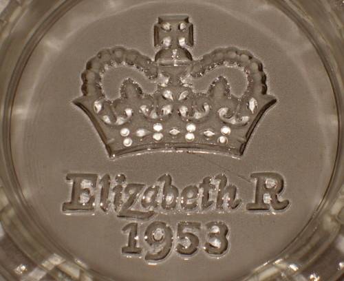 A clear pressed glass ashtray, issued to commemorate the coronation of Her Late Majesty