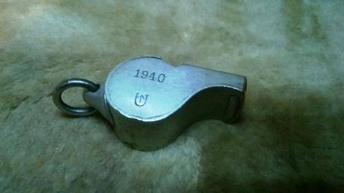 Inscribed THE ACME THUNDERER, J.HUDSON & CO BIRMINGHAM, 1940 AND A U WITH A UPWARD POINTING ARROW INSIDE AS PER PICTURES.