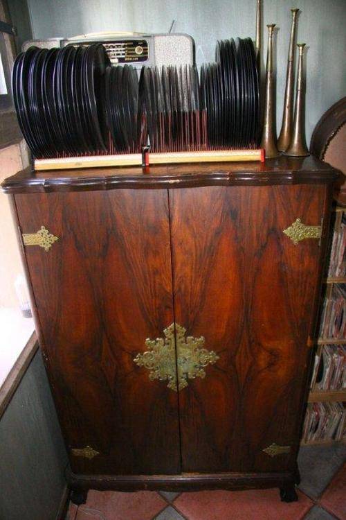 Please note: Items on top of the cabinet and the record albums right bottom are not included in this sale