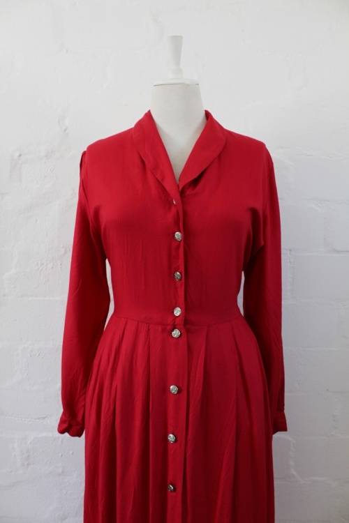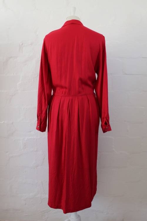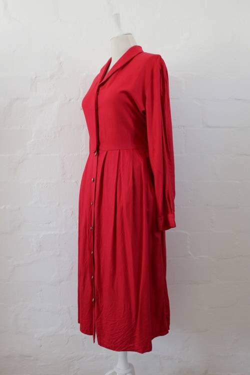 VINTAGE RED BUTTON DOWN LONG SLEEVE DAY DRESS - SIZE 14