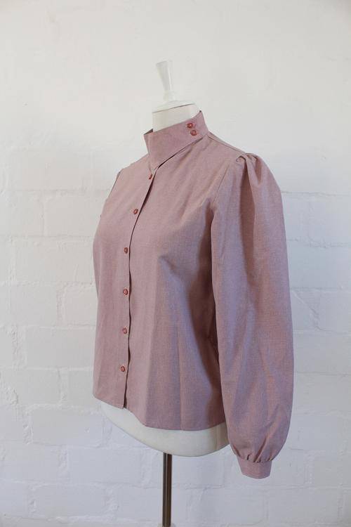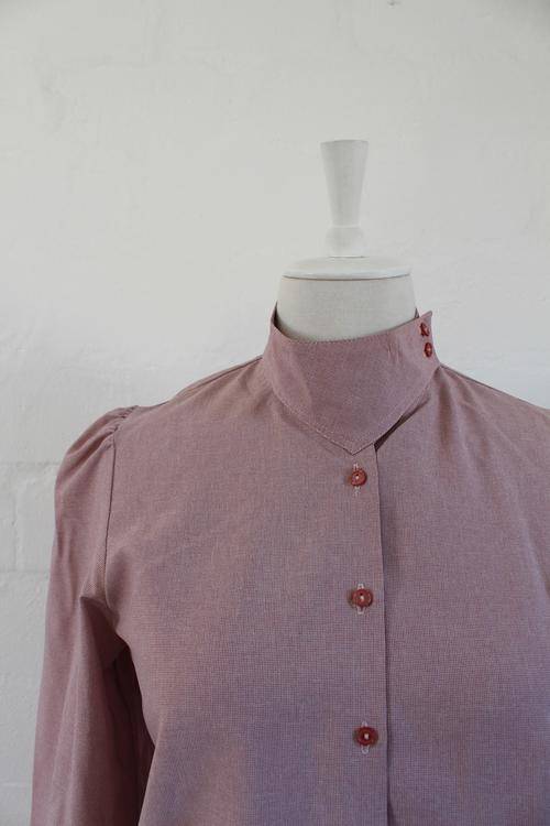 VINTAGE RED CHECK HIGH COLLAR BLOUSE SHIRT TOP - SIZE 10