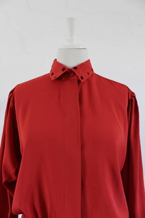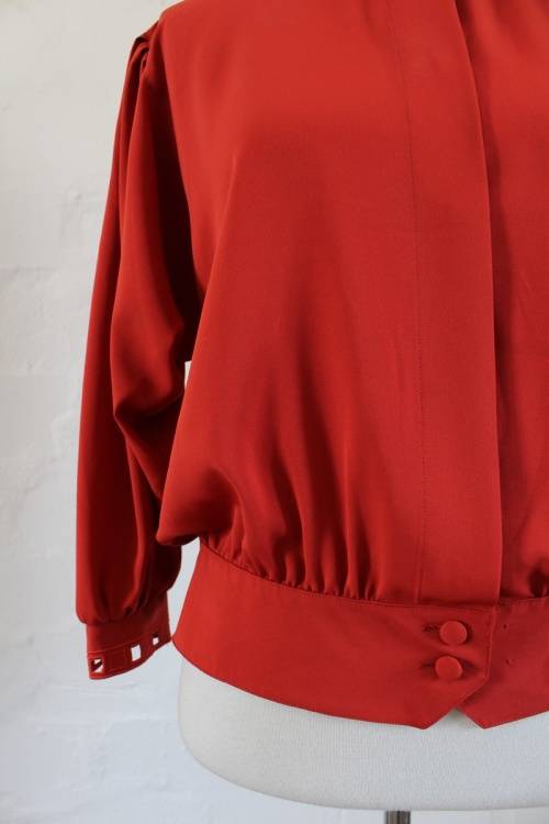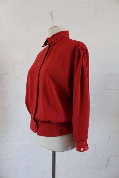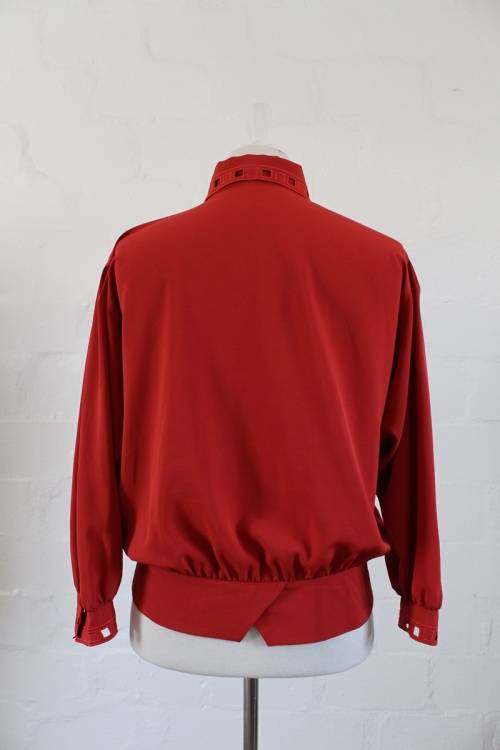 VINTAGE RED CUT-OUT DETAIL BLOUSE SHIRT TOP - SIZE 12