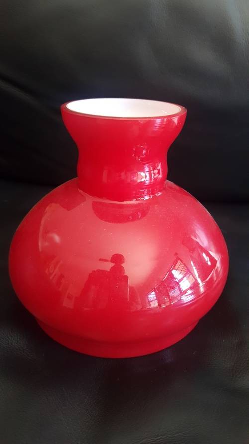 Beautiful vintage red glass lampshade. Bright White inside. In good condition, but there is a tiny default (see photos)