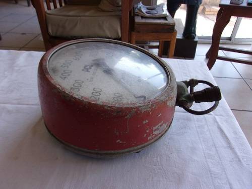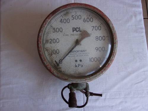 Vintage red PCL tyre pressure gauge for display. I would estimate that this old pressure gauge would have been used at a service station in the 1960/70s. It was manufactured by Pneumatic Components Ltd in Sheffield England. It is manufactured from metal and is red in colour. It measures 25cm in diameter, and has brass connection pipes. I am not sure whether the gauge would work (untested), but it would make a lovely display in a workshop or bar. I have not cleaned the gauge, and it does have paint scratches but I think this gives it more character. Great buy for the road transportation collector.