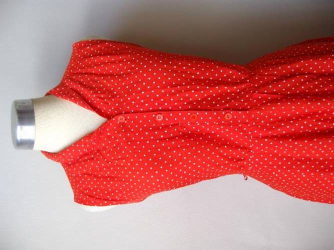 VINTAGE RED POLKA DOT BUTTON DOWN COLLARED SUMMER DRESS - SIZE 8-10