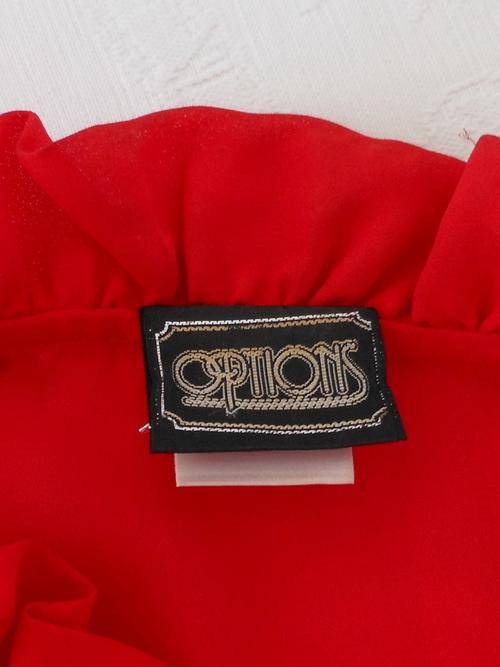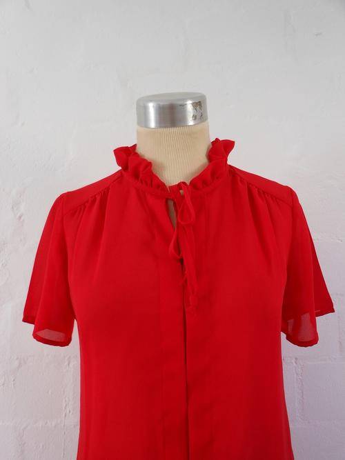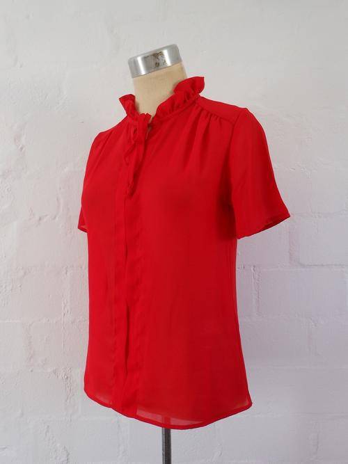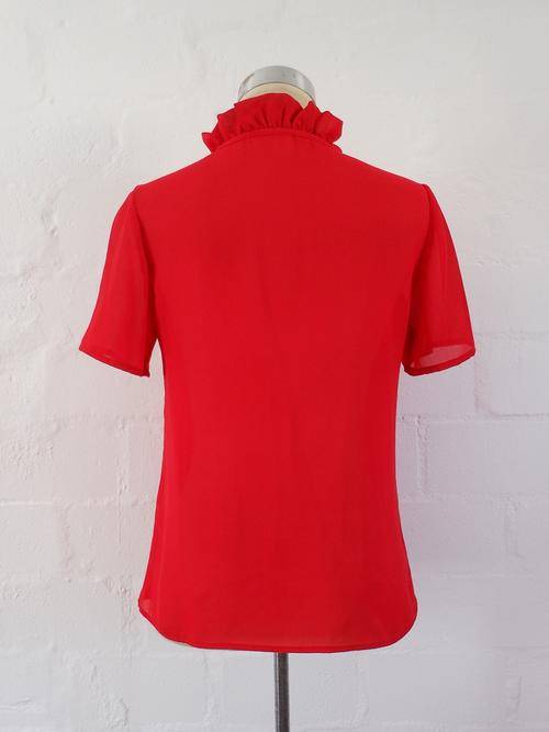 VINTAGE RED RUFFLE SHORT SLEEVE PUSSYBOW BLOUSE SHIRT TOP - SIZE 8