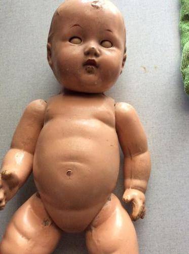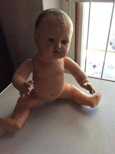 this vintage "Reliable Toy" doll is in excellent condition! My estimate is that it's mid to late 1930's. All its joints still function incl eyes opening and closing, all fingers and toes in tact!