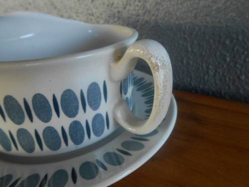 The gravy boat and the saucer are both in good condition, there are no chips or cracks