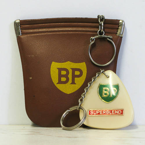 VINTAGE RETRO BP RESIN AND ARTIFICIAL LEATHER KEYRINGS 1970's