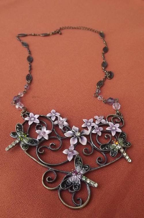 VINTAGE RETRO ENAMEL AND RHINESTONE AND COLOURED GLASS STONE NECKLACE