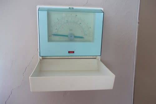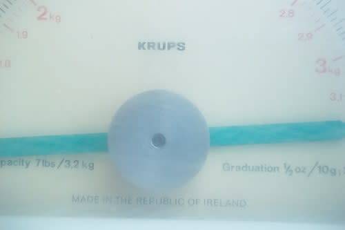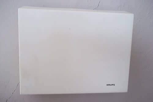 Vintage retro Krups wall hanging kitchen scale. This old Irish manufactured scale would have been produced in the 1960s. It is cream with a light green cover, and can weigh up to 7lbs. Cleverly designed, it affixes to a wall with a folding down weighing pan which folds up when not in use. Thus storage is neat. It measures 27cm (height) x 22cm (depth) x 26 cm (length when open). It is in good working condition. Great buy for your vintage kitchen.