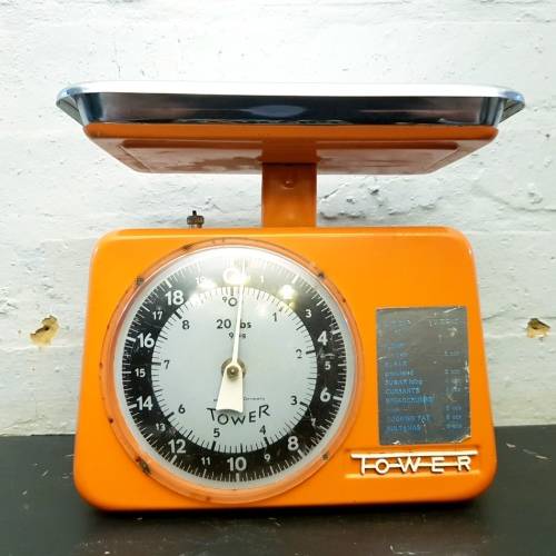 Vintage Retro Orange Tower Kitchen Scale and Chrome Bowl!!!