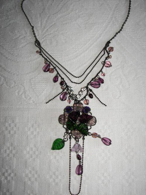 VINTAGE RETRO RHINESTONE+GLASS COLOURED STONES AND ENAMEL BEADED NECKLACE