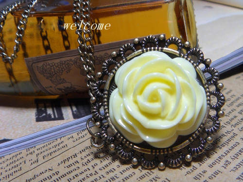Vintage Retro Yellow Flower Long Necklace Pendant Charm