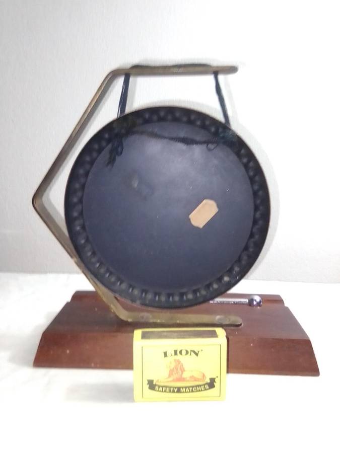 A Rhodesian Copper Dinner Gong having Mahogany Stand with Striker.