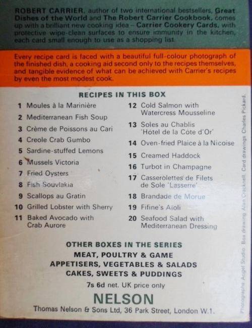 VINTAGE ROBERT CARRIER COOKERY CARDS - 20 CARDS STILL IN ORIGINAL BOX - CIRCA 1967
