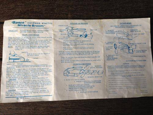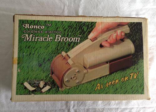 A VINTAGE CORDLESS ELECTRIC MIRACLE BROOM CAN BE SO HANDY. IN ORIGINAL BOX WITH INSTRUCTIONS.