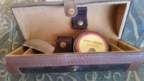VINTAGE ROUND LEATHER SHOE POLISH CASE-SEE DESCRIPTION