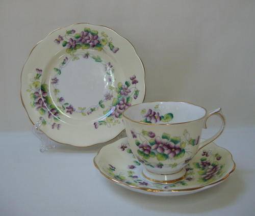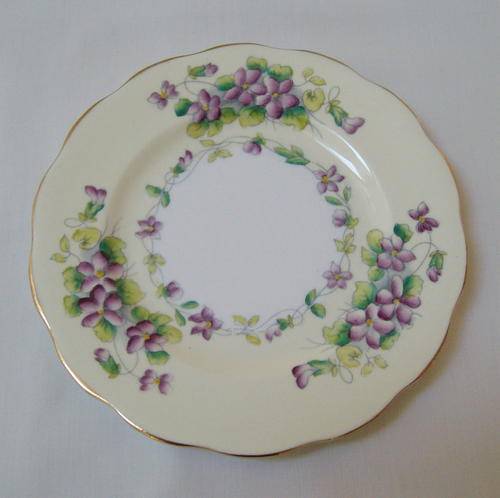 transfer-printed and hand-painted sprays and garlands of purple violets