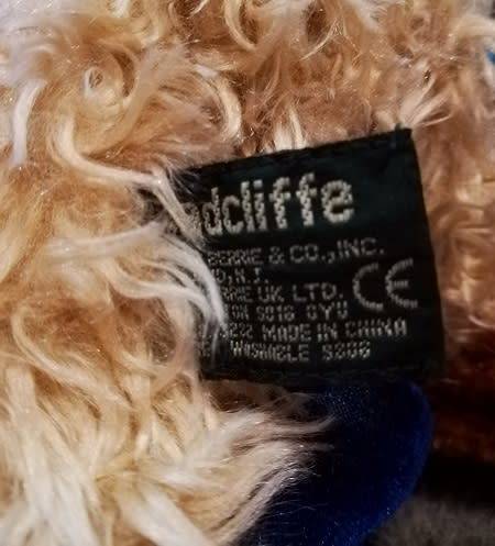 Vintage Russ Berrie - Radcliffe! Collectable from bears from the past! Item 3283. Great as a gift for any occasion or for the Russ Berrie Teddy Bear collector. Radcliffe is a traditional bear with shaggy, tan colored fur, brown plastic eyes and sewn puffy brown nose and mouth. It has a few bean pellets in the rump and paws area to help it sit up well. Non jointed. An absolutely, small, beautiful teddy bear. Radcliffe is surface washable and soft and cuddly with a plush, peach satin ribbon. Please note, this is not the original ribbon. He measures 22cm. Sitting up 17cm. Russ Berrie tush tag only.