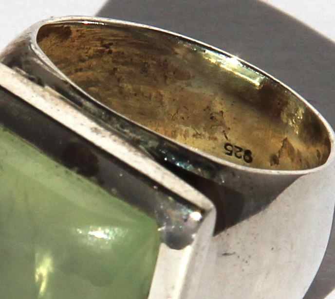 The ring is in excellent condition - both the stone and the silver band. There are some scuff-marks, visible under the magnifying glass, but generally no wear and tear that detracts from the piece. The 925 hallmark is clearly visible.