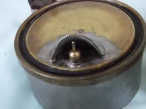 These type of lamps were used in the the mines as well as by the Railways. Carbide was placed in the bottom container whilst water was dripped on it from the top tank. The gas that was formed escaped through a nozzle and then lit to provide a blue burning flame. The locking screw of this unit seems to be modified. Made by Radiator Bulawayo, this unit has a diameter of 95 mm and is about 220 mm tall. Not sure if it is still in working order. As per photos. Please note: bobPay EFT only Postage and packaging: R40.00 + 3% insurance (if required). Combined items to be advised as per Post Office rates.