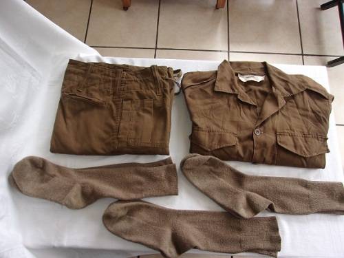 Vintage SADF nutria brown shirt, trousers and 3 pairs of socks for 1 bid. This lot dates to 1977. It consists of: