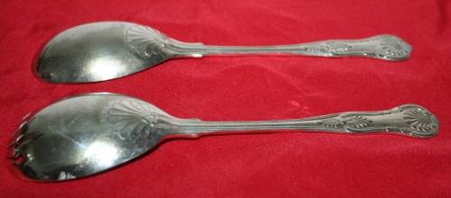 Vintage Salad Servers, Spoon and Fork, Silver Plated, Kings Pattern, Harvest