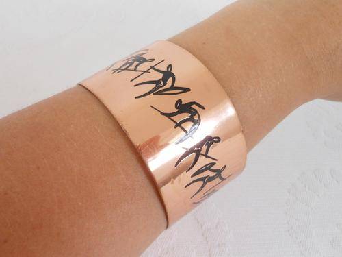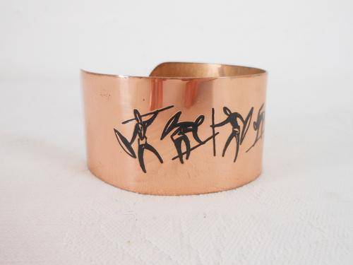 VINTAGE SAN TRIBAL CAVE DRAWING COPPER CUFF BRACELET BANGLE