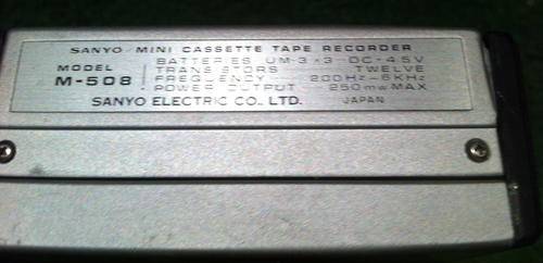 vintage sanyo mini cassette tape recorder, Model 508 spins relative to function when inserted with batteries, as seen in pics , ext power can be supplied dc 4.5V