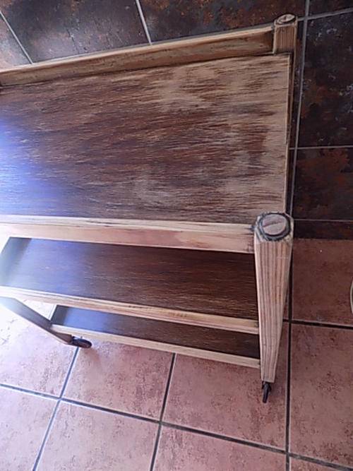 This lovely old trolley had some marks and was sanded to it's original beauty and now just needs some-one to finish it off - no damage - very good condition