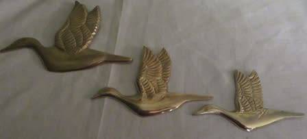 Vintage Set of Brass Flying Geese with hangers intact, Size 22.5cm x 15.5cm, 18cm x 13cm & 15cm x 10.5cm.