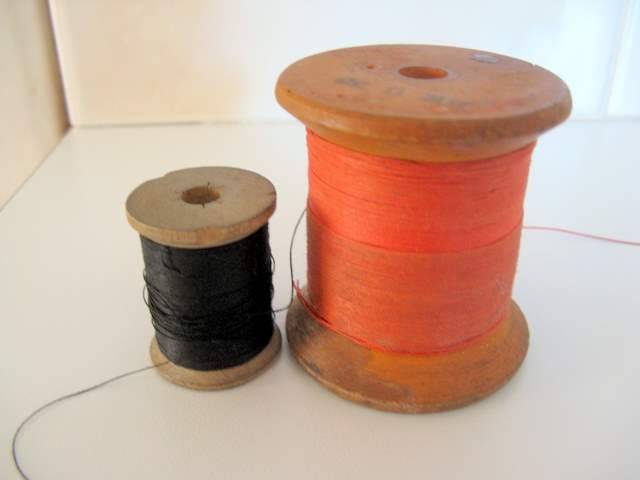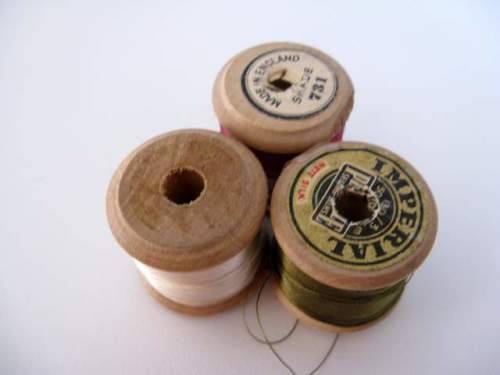 2 cotton reels with cotton--name torn off 2 on 1 side 2 cotton reels with no name