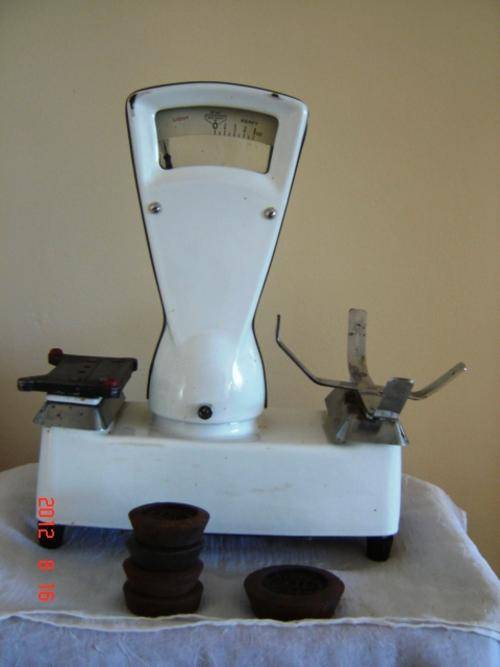 VITAGE SHOP SCALE FROM CHAS W. BRECKNELL LTD TO WEIGH 5LB. NO TRAYS. IN WORKING CONDITION. INCLUDED ARE 5 AVERY WEIGHTS 4-1LB AND 1-2LB. HEIGHT 44cm WIDTH 38cm. POSTAGE IN S.A. (WEIGHTS INCLUDED) R140.00