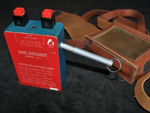 This gadget (1st on Crazy Wednesday?) is to set off explosives in the mining and demolition industries. The manufacturer assured me it is quite legal to possess, and this model was discontinued more than a decade ago. Obviously untested and intended only for your collection or a man cave. Appearance very good to excellent and comes with it's magnetic activating key and leather pouch. Slightly larger than a packet of cigarettes. Postage R 25.
