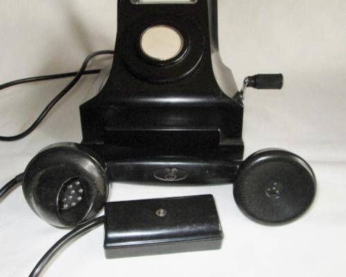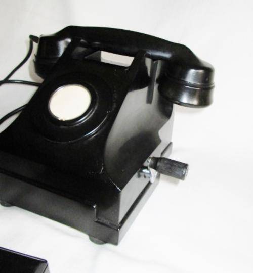 .A lovely vintage Siemens crank Bakelite telephone with bells, pre rotary dial, in very good condition for its age with very minor wear. size 16 cm x 19 cm x 16 cm, handset length 22 cm, weight +/- 3.5kg.