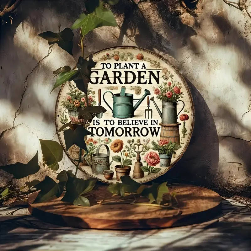 1pc Vintage Planting Garden Believing in Tomorrow Wall Sign 17.78x17.78cm Wood Fiberboard Decor for