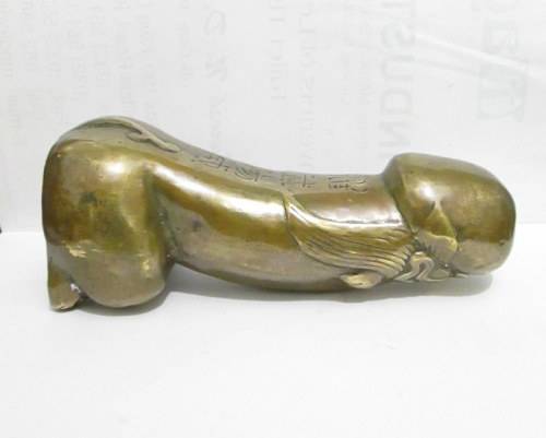 A vintage signed oriental solid bronzed copper male penis sculpture. 17.7 cm high, 7 cm width, 800g weight.