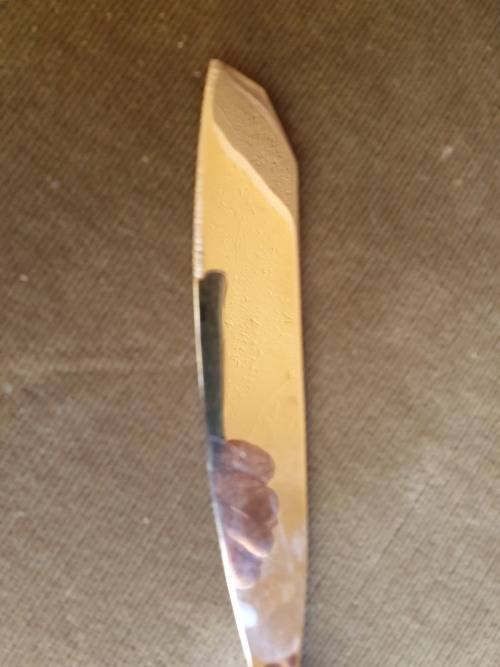 Knife 28cm and the lift piece 27cm. There are marks on the cake lift which are unlikely