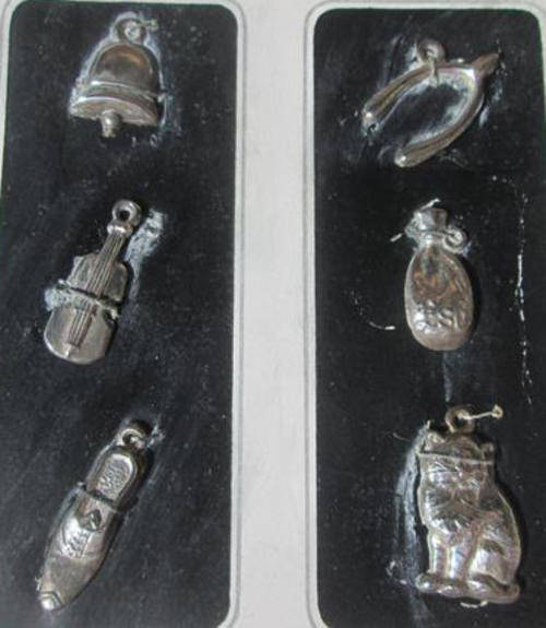 SILVER CHARMS FOR YOUR CHRISTMAS PUDDING, JUST THE WAY GRANNY USED TO DO....SET OF SIX, CONDITION GOOD.