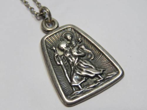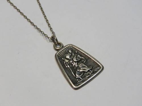 Vintage silver necklace with St. Christopher pendant - Weighs 6.1grams