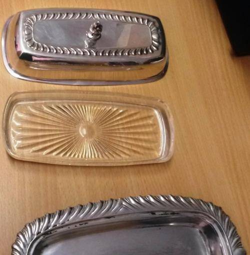 vintage silver plate/metal butter dish glass insert intact, in good condition not sure of age no marks found , price excl shipping but we can quote if needed, please ask if any questions and thanks for looking